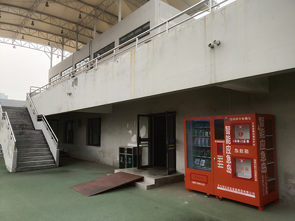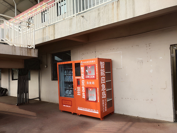 与河北本公司师范大学展开合作投放智能应急岛,其中AED目的是为了预防与抢救心脏病突发患者,(心脏骤停病人早期85%~90%是室颤,治疗室颤最有效的方法是早用AED除颤。除颤每除推迟1分钟,存活率降低7%~10%。CPR与AED在黄金四分钟内有效配合使用,是抢救心跳呼吸骤停猝死病人的最有效抢救手段);急救箱是为了应对各种突发情况如:摔伤划伤等,都可以免费使用急救箱来进行包扎治疗。智能应急岛还带有销售部分,用于满足学生日常消杀(如消毒棉球、碘伏棉棒、创可贴等)。